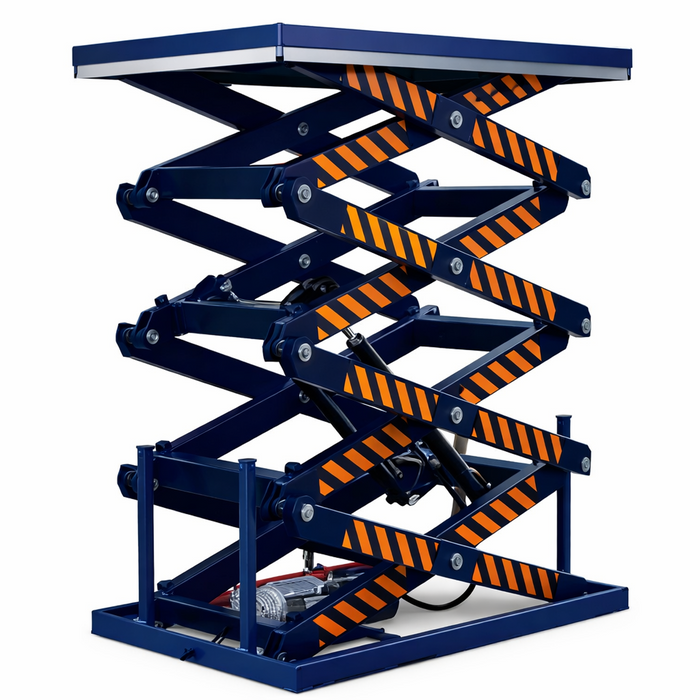 An advanced hydraulic system designed for the safe lifting of loads, pallets and heavy equipment between different work levels in factories and logistics centers. The table is based on a sturdy steel scissor mechanism connected to a stable platform, and allows precise height adjustment to improve ergonomics at the workstation, while ensuring high resistance to changing loads over time. The solution enables ergonomic work, improved workflow and reduced manual effort when handling heavy loads. The lifting tables are manufactured in a massive industrial structure adapted to continuous work in an industrial environment and provide a high level of safety over time.